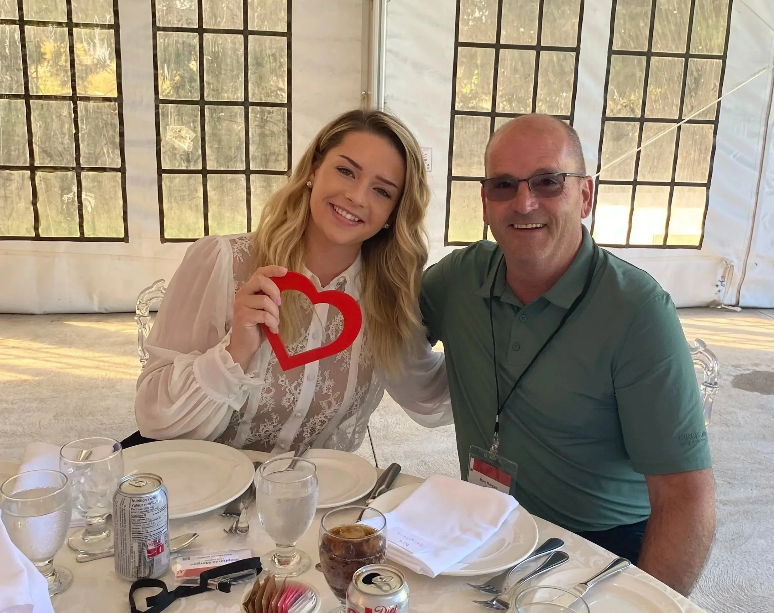 Stephanie and her father attend an event for people with valve disease.