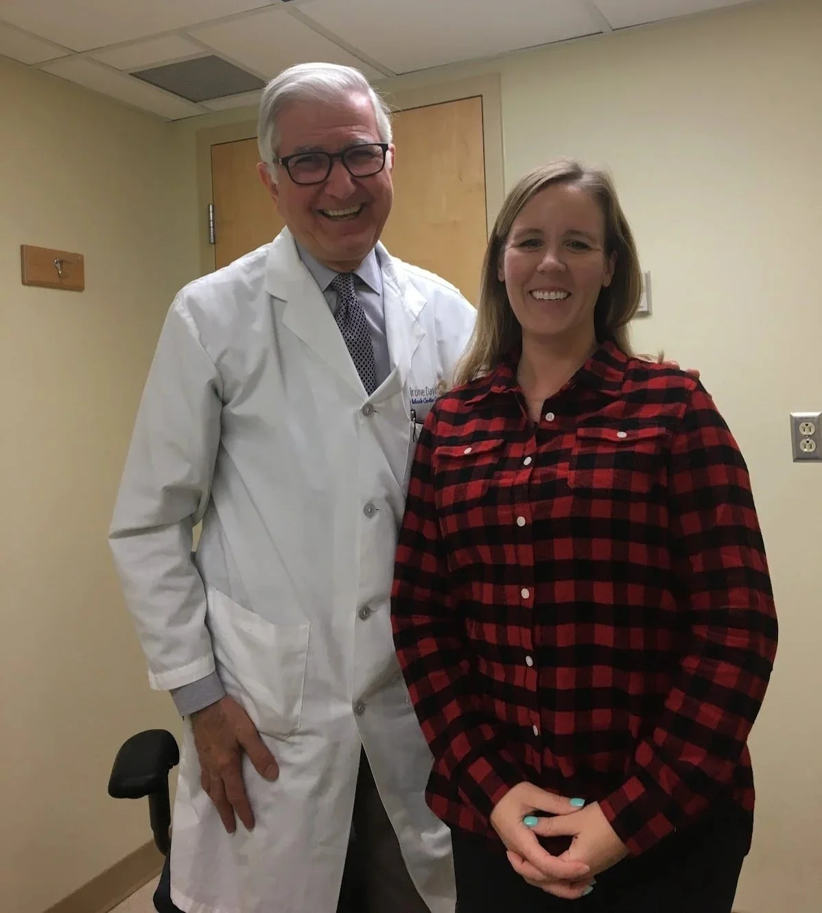 Keri avec le Dr Tirone David, deux semaines après sa chirurgie.